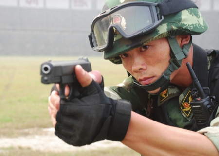 站在記者面前的王永法個(gè)頭中等、皮膚黝黑、體魄健壯。這位來自河南的80后老兵,乍一看和普通一兵并無不同。但他身上卻籠罩著一道道光環(huán):囊括了武警四川總隊(duì)近兩年所有軍事比武的冠軍,5次被評(píng)為“軍事訓(xùn)練標(biāo)兵”,榮立二等功1次,三等功4次,榮獲武警部隊(duì)“勇士勛章”,最近作為西南反劫機(jī)作戰(zhàn)隊(duì)的代表人物,被確定為第十五屆中國(guó)武警十大忠誠(chéng)衛(wèi)士候選人……在武警四川總隊(duì)一支隊(duì),他是人人皆知的“瘋子”。
