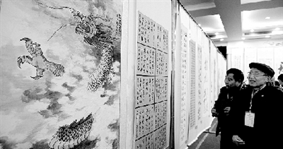第三屆全國炎黃書畫展在西亞斯學(xué)院開幕。記者 張翼飛 圖