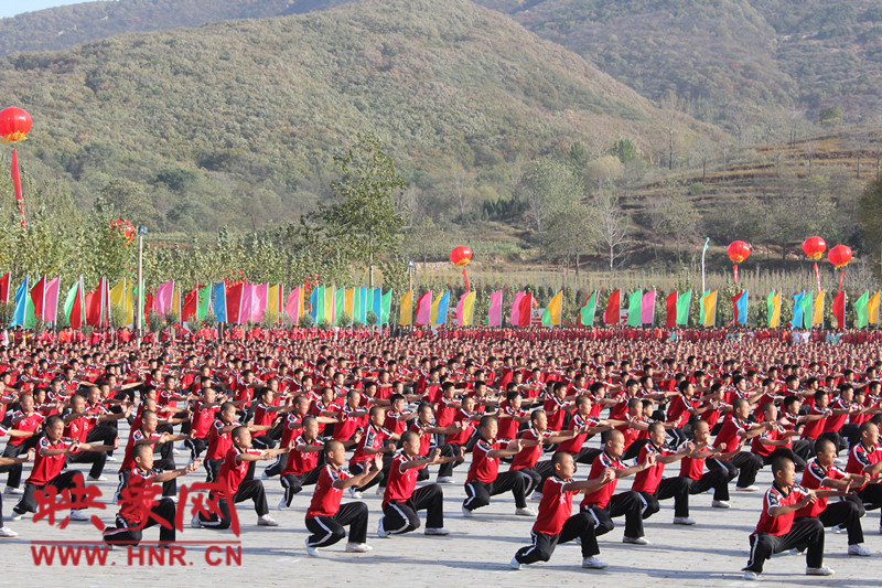 10月22日,少林寺塔溝武術(shù)學(xué)校的學(xué)員在第九屆中國(guó)鄭州國(guó)際武術(shù)節(jié)迎賓式上表演萬人團(tuán)體武術(shù)。