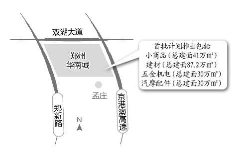 他介紹,位于新鄭的華南城一期首批計劃推出小商品市場和精品交易區(qū),總計158.2萬平方米。精品交易區(qū)包括建材、五金機(jī)電、汽摩配件等業(yè)態(tài)。