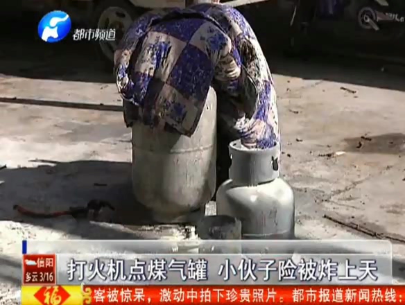 打火機(jī)點(diǎn)煤氣罐 小伙險被炸飛