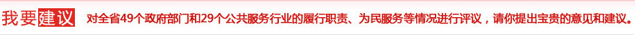 為貫徹落實(shí)黨中央、國(guó)務(wù)院關(guān)于加強(qiáng)作風(fēng)建設(shè)的指示精神和省政府關(guān)于"兩轉(zhuǎn)兩提"的要求,努力建設(shè)服務(wù)政府、責(zé)任政府、法治政府和廉潔政府,進(jìn)一步增強(qiáng)公共服務(wù)行業(yè)的服務(wù)意識(shí),切實(shí)加強(qiáng)政風(fēng)行風(fēng)建設(shè),省政府糾風(fēng)辦繼續(xù)在全省各級(jí)政府部門和公共服務(wù)行業(yè)開展以"樹立優(yōu)良作風(fēng),構(gòu)建和諧中原"為主題的民主評(píng)議政風(fēng)行風(fēng)活動(dòng)。河南省人民政府糾風(fēng)辦委托映象網(wǎng)開通網(wǎng)上評(píng)議系統(tǒng),對(duì)全省49個(gè)政府部門和29個(gè)公共服務(wù)行業(yè)的履行職責(zé)、為民服務(wù)等情況進(jìn)行評(píng)議,請(qǐng)你提出寶貴的意見和建議。