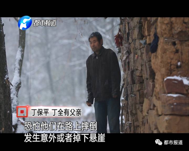 放學(xué)了,姐弟倆從學(xué)校到家要走六七公里山路,這樣下雪的天氣里,他們得比平常更小心。而此時家里的爸爸丁保平,也焦急得在家門口等待孩子們回家。