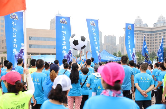 舞臺(tái)區(qū)化身足球?qū)氊惱怖碴?duì)的展示臺(tái),動(dòng)感時(shí)尚的舞步與潮流健身操結(jié)合,引得群眾積極互動(dòng)。更有樂隊(duì)演出環(huán)節(jié),為奔跑的新鄉(xiāng)市民獻(xiàn)上一首勝利贊歌。