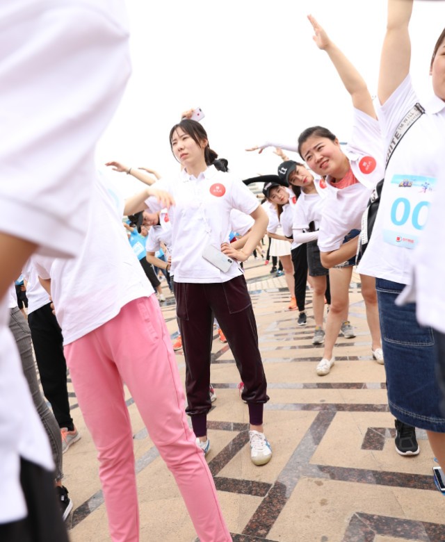 熱身操時(shí)也不忘耍寶,歡樂與跑步缺一不可