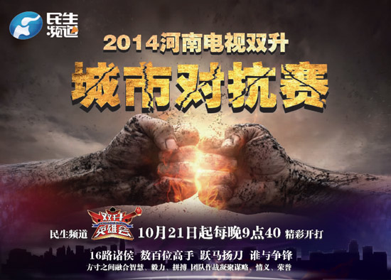 由河南電視臺(tái)民生頻道主辦的“2014河南省電視雙升城市對(duì)抗賽競(jìng)賽”將于2014年10月21日拉開(kāi)帷幕。