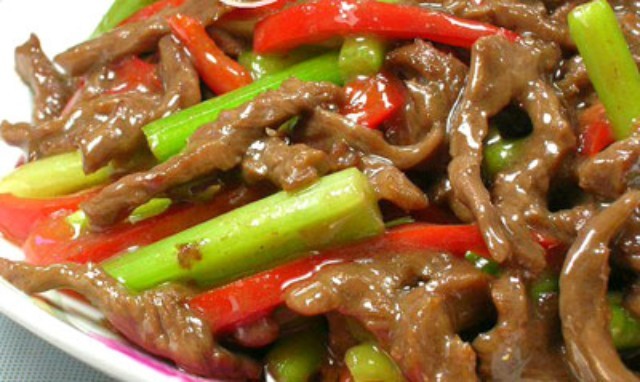 材料:嫩牛肉300克,芹菜150克。