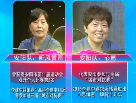 雖然來的是兩名女隊(duì)員,但是人家巾幗不讓須眉?!奥狅L(fēng)賞雨”曾獲得安陽市第11屆運(yùn)動會雙升個人比賽第2名;2015年“李建中踢館賽”領(lǐng)先李建中11級;參加過三次“河南電視雙升城市對抗賽”。“心愿”在2015年“李建中踢館資格賽”中勝出;代表安陽隊(duì)參加過兩屆“河南電視雙升城市對抗賽”,牌齡十幾年。