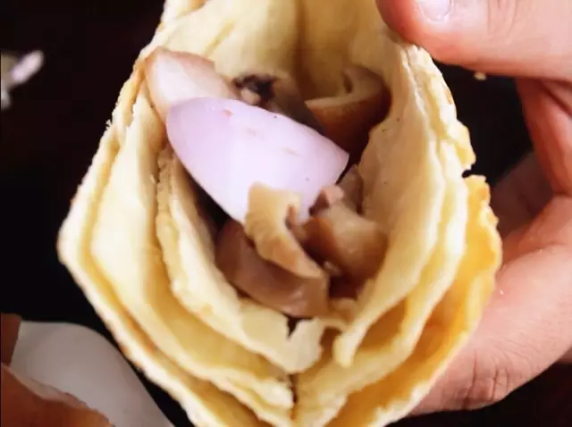 用手一掰放入幾片切好的肉,懂行的吃貨還要再放片洋蔥,解了鹵肉的油膩也添了清香,一口下去滿滿都是脆軟香鮮,炎熱的夏天吃一個(gè)很是開胃、