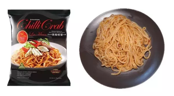產(chǎn)于新加坡的辣椒螃蟹拉面從名字上就感受到了滿滿的新加坡風(fēng)情,畢竟辣椒螃蟹正是一道非常有名的新加坡菜肴。打開泡面后,是一袋醬包和油包,面條比較粗,類似于拉面的形狀。