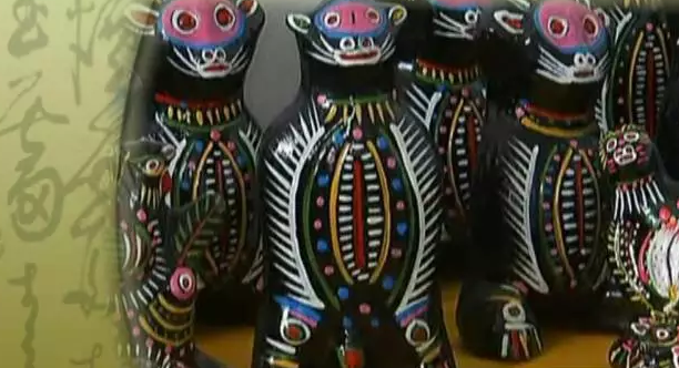 原來泥泥狗就是按照伏羲女媧捏人的方法,用泥制造。傳說伏羲是人頭狗身,“伏”字便是“人”與“犬”兩字合成,所以泥泥狗造型都是人頭獸身。多達兩百多種造型,唯一的共同點是,他么全部以黑為基調,另用青、赤、白、黃繪制。泥泥狗為什么以黑色做底、五色點化呢?如此受歡迎的泥泥狗是如何制作的?他們的造型究竟是天馬行空還是有據可查呢?