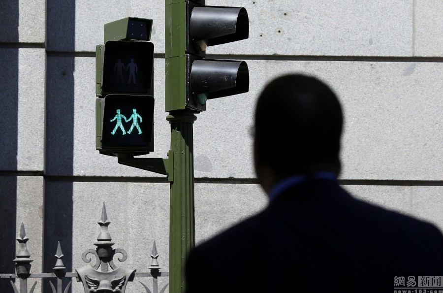 西班牙現(xiàn)同性戀紅綠燈 同性伴侶牽手過街