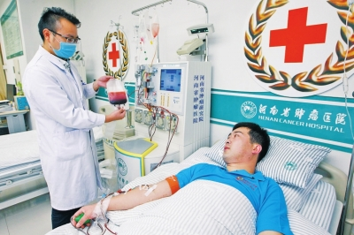 “上午8點(diǎn)半開(kāi)始采集,3個(gè)小時(shí)順利結(jié)束?!弊蛱焐衔?,來(lái)自焦作沁陽(yáng)的33歲退伍兵張國(guó)強(qiáng),在河南省腫瘤醫(yī)院造血干細(xì)胞采集室成功捐獻(xiàn)造血干細(xì)胞混懸液194毫升。