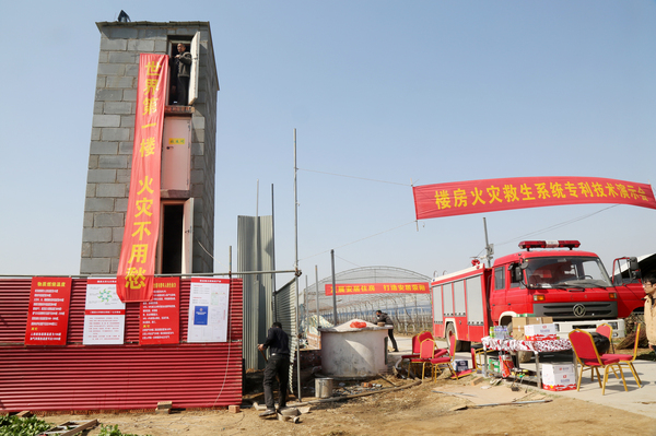 原來,這是在進(jìn)行樓房火災(zāi)救生系統(tǒng)的現(xiàn)場演示。
