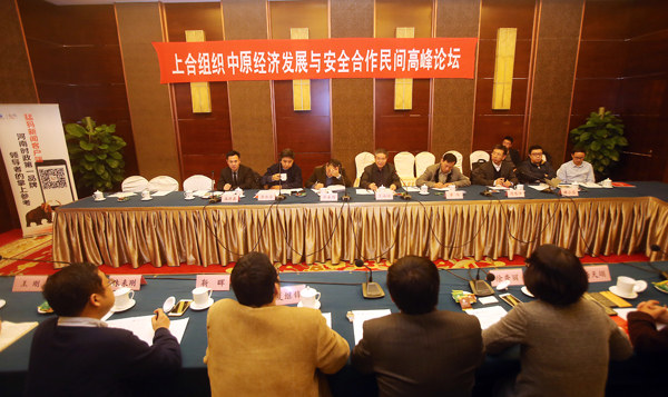 12月13日上午,北京河南大廈四層中原廳內(nèi)高朋滿座,思想碰撞,創(chuàng)意迭出。由河南省新聞出版廣電局、北京河南大廈主辦,大象融媒·大象智庫、大象融媒·猛犸新聞 、香港天溯智庫承辦的“上合組織和中原經(jīng)濟(jì)發(fā)展安全與合作2015民間高峰論壇”在這里成功舉辦。中國上海合作組織國家研究會中心高級顧問王海運少將等一批國際區(qū)域經(jīng)濟(jì)、安全合作領(lǐng)域的國家級研究專家和有影響力的實戰(zhàn)派“大咖”圍繞“國際新格局下上合組織的新使命”、“一帶一路戰(zhàn)略的安全保障”、“一帶一路戰(zhàn)略中的中原企業(yè)與地方政府優(yōu)劣勢”、“ 中原企業(yè)在上合組織成員國的商機(jī)與風(fēng)險”等話題展開高端座談。